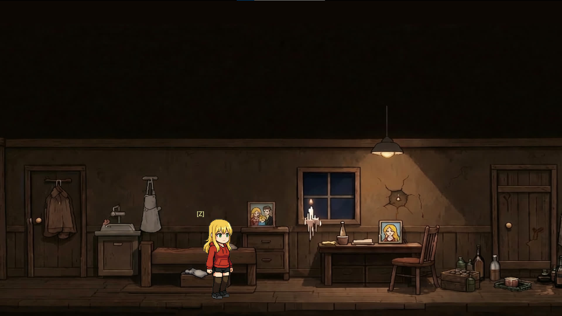 - Side-scrolling exploration — search rooms, examine objects, uncover memories